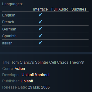 Tom Clancy´s Splinter Cell Chaos Theory (Steam Gift / ROW / Region Free)