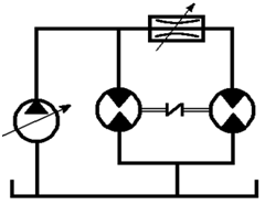Стенд с рекуперацией мощности состоит из двух однотипных объемных гидромашин, установленных на валу электродвигателя, и подпиточного насоса. Определить мощность электродвигателя, если давление насоса подпитки р=107 Па. Рабочий объем установленных гидромашин q=32 см3/об, гидромеханический КПД ηГМ=0,92 для обеих гидромашин, n=1000 об/мин.